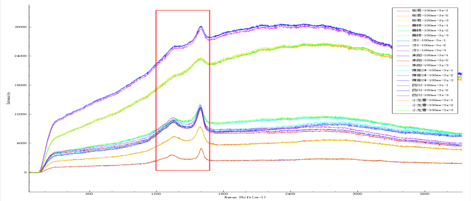不同產地煤粉的拉曼圖譜