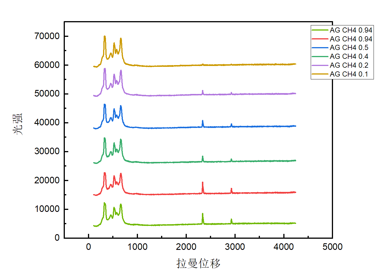 不同濃度混合氣體拉曼圖譜