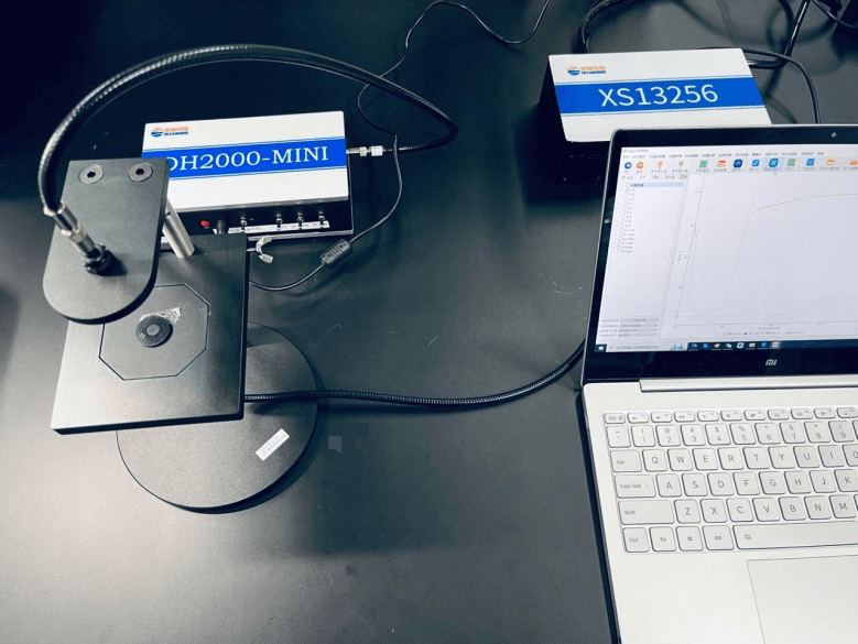 通過光纖,將透反射支架與氘鹵燈、光譜儀相連,氘鹵燈接上端準直鏡,光譜儀接下端準直鏡,USB線連接光譜儀與電腦,啟動光譜儀和氘鹵燈電源;