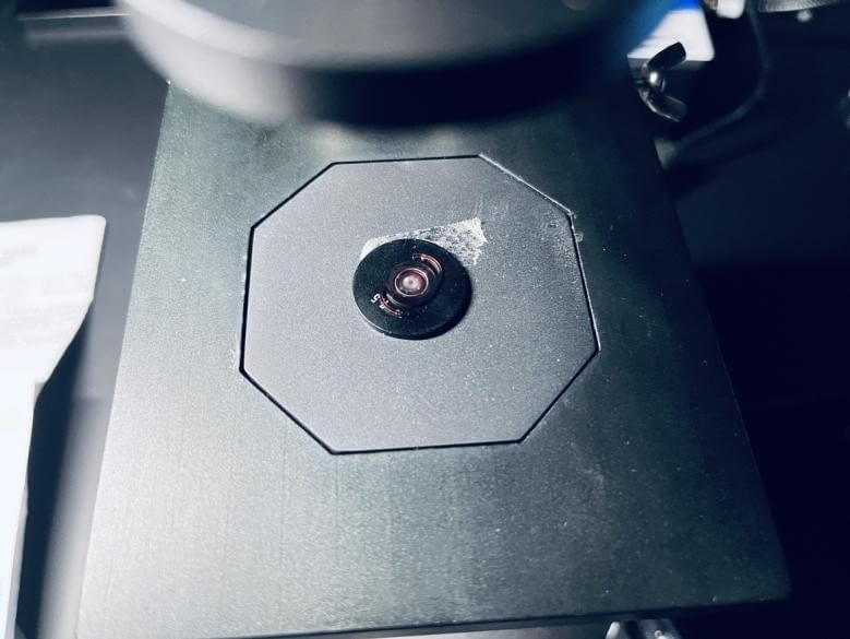 將0.3mm通徑round slit固定於透反射支架的樣品台光路通道處,減小光源光斑直徑;