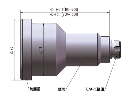 Ü 光束遠場發散角:使用對應波長單模光纖,依高斯光束1/e²理論計算,公差±0.003°/0.0°