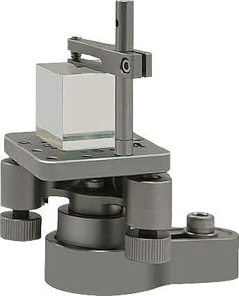 安裝平台有2個調節旋鈕,可以拆卸,六角驅動設計,機械角度範圍士4°。使用調整架背板上的M4沉頭孔將帶安裝平台的調整架水平安裝到接桿上,調整上方壓臂放入稜鏡鎖定壓臂位置,旋緊壓緊螺絲固定柱稜鏡即可。